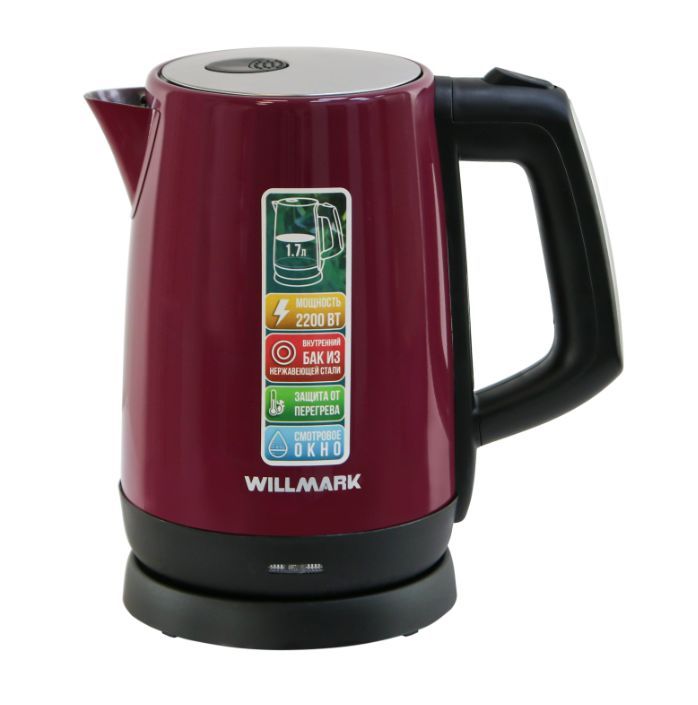 Чайник WILLMARK WEK-1758S современный чайник с удобной ручкой, мощностью 2200Вт, увеличенным объёмом 1,7 литра,с закрытым нагревательным элементом из нержавеющей стали. Удобен в эксплуатации.
