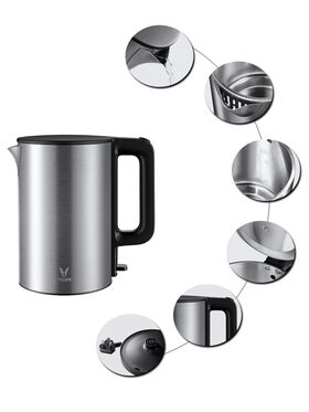 Стильный электрический чайник с закрытой спиралью и вместимостью до 1,5 литра воды выполнен в лаконичном дизайне, в металлическом цвете. Кнопка открывания крышки находится возле ручки, что позволяет наполнять емкость одной рукой. Тумблер включения нагрева с индикатором рабочего режима вынесен вниз при кипении он автоматически отщелкивается в исходное положение.