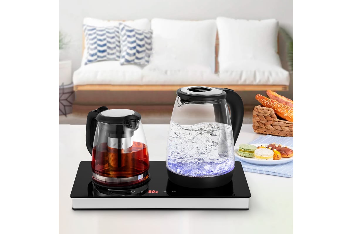 Стильный и функциональный чайный набор Kitfort КТ-6181 состоит из чайника ёмкостью 2 л, кувшина с фильтром для заварки ёмкостью 1,2 л и базы. Набор поможет вам не только вскипятить воду, но и заварить чай или кофе за пару движений!