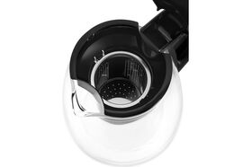 Кувшин для заварки изготовлен из термостойкого стекла и имеет съёмный фильтр для чая или кофе. В месте установки кувшина на базу присутствует скрытый нагревательный элемент с функцией поддержания тепла. Корпус чайника выполнен из стекла с вставкой из пластика. Крышка выполнена из сочетания нержавеющей стали и пластика и легко открывается с помощью кнопки сверху. Мерная шкала находится на боковой стороне стеклянной части корпуса.