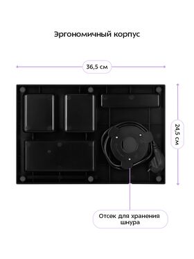 Подставка имеет эргономичный корпус оптимального размера. Также, под местом расположения чайника, расположен отсек для хранения шнура, что позволит смотать лишние провода при использовании или убрать его вовсе при необходимости.