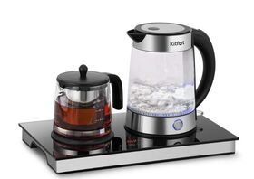 Чайный набор КТ-6744 состоит из чайника ёмкостью 1,7 л, заварочного чайника ёмкостью 1 л с фильтром и базы. Чайный набор позволяет не только вскипятить воду, но и заварить чай или кофе в заварочном чайнике.
