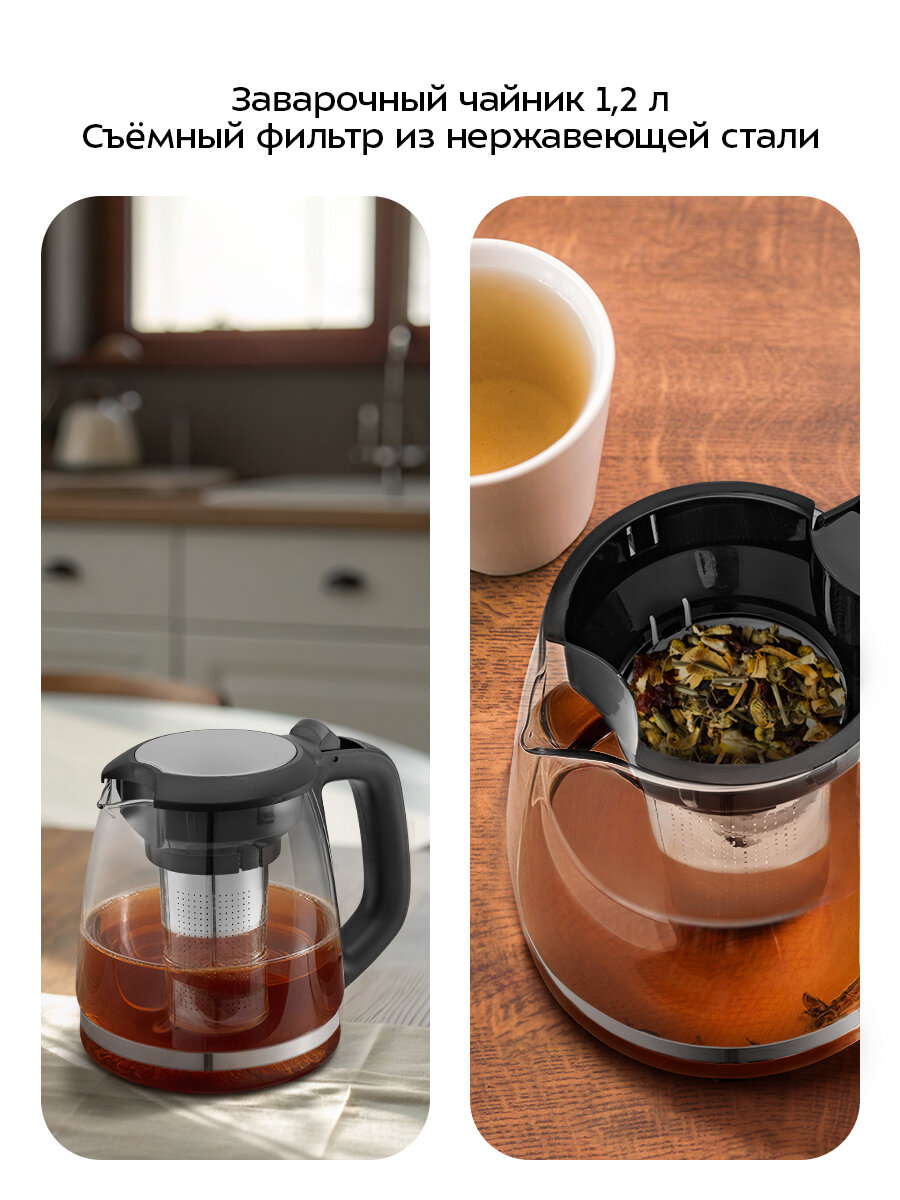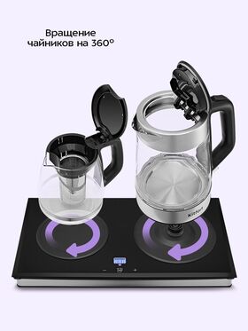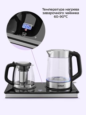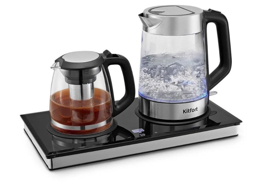 Чайный набор КТ-6776 — идеальное сочетание функциональности и удобства для ценителей чая и кофе. Он кипятит воду, позволяет заваривать напиток в чайнике и сохраняет его тепло благодаря платформе с подогревом.
