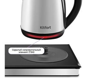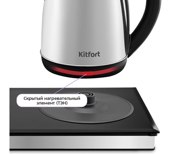 Нагревательный элемент чайника расположен в нижней части и надёжно изолирован от воды. Он защищён металлической пластиной из нержавеющей стали, которая предотвращает образование накипи и снижает уровень шума во время нагрева.