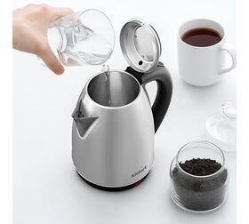 Чайник и крышка из нержавеющей стали и пластика обеспечивают прочность и удобство. Отметки на внутренней стороне позволяют определить количество воды, предотвращая перелив. А защита от перегрева и блокировка включения без воды гарантируют безопасность.