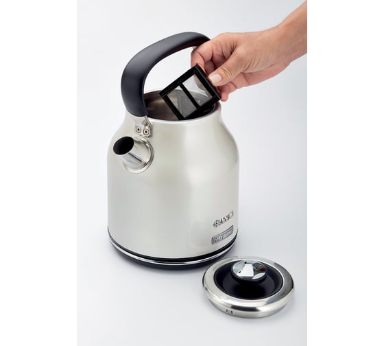 Благодаря встроенному и легко моющемуся фильтру, системе автоматического отключения и эргономичной ручке чайник является безопасным и простым в использовании.