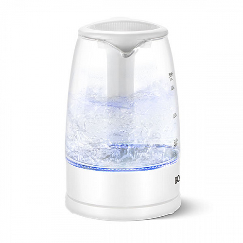 Вместительный чайник BQ KT1839G объемом 1.7 литра оснащен дисковым нагревательным элементом мощностью 2200 Вт, обеспечивающим быстрое кипячение. Корпус прибора изготовлен из качественного термостойкого стекла BOROGLASS.
