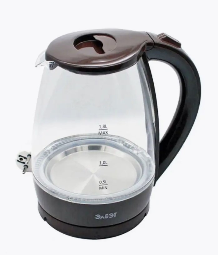 Чайник изготовлен из стеклянной колбы и пищевого полипропилена. При производстве, стеклянные колбы проходят тесты на жаропрочность и ударостойкость.