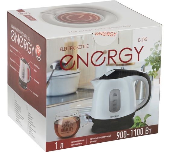 Чайник Energy E-275 1 л, диск/пластик, бело-черный, 164094 - компактный чайник, предназначенный для кипячения воды дома, в офисе, в загородном доме, на даче.