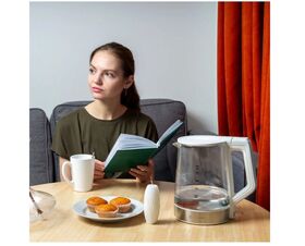 ⠀Объемная колба на 1,7 л позволит приготовить напитки для большого чаепития. Благодаря шкале, нанесенной на боковую часть колбы, вы легко сможете отмерить нужное количество воды. Внутренняя LED-подсветка, расположенная по нижнему контуру стеклянной колбы, подсветит пузырьки воды. Благодаря ей, прибор прекрасно виден в полной темноте.