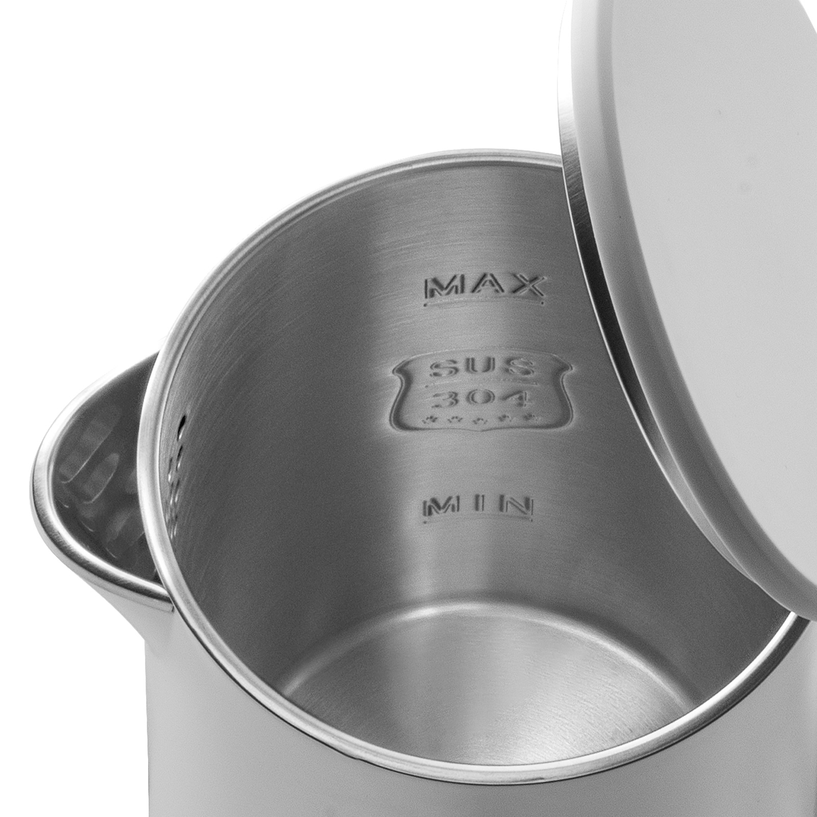 На внутренней стенке чайника имеется метка максимального уровня воды. Подставка с центральным контактом даёт возможность ставить на нее чайник в любом положении, обеспечивая вращение на 360°. Нагревательный элемент у данной модели чайника скрытый и находится в дне. Сверху он закрыт пластиной из нержавеющей стали, которая защищает его от накипи, облегчает уход за ним и снижает шум при нагревании воды.