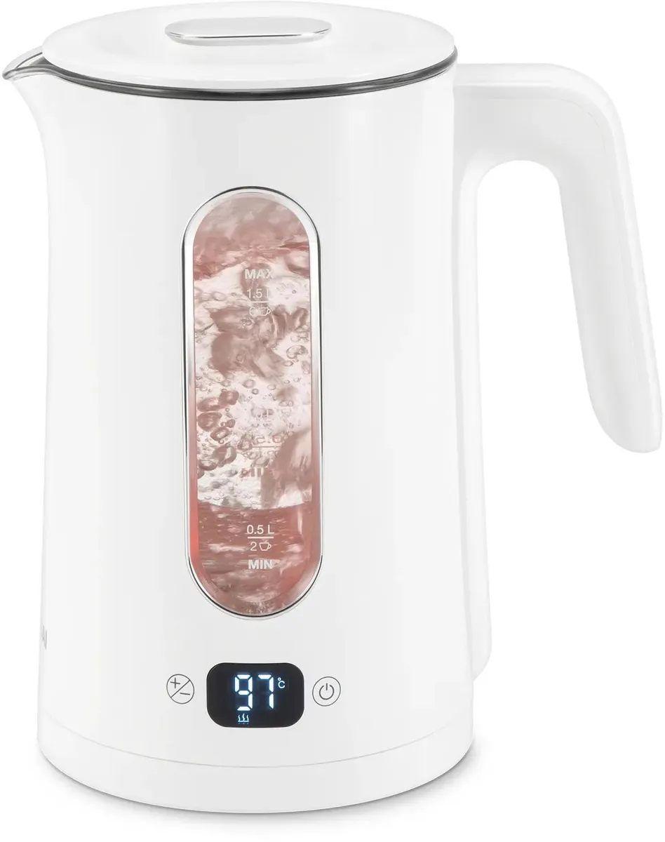Красивая LED подсветка меняет свой цвет при повышении температуры. Полностью съемная крышка для простоты залива и очистки чайника.