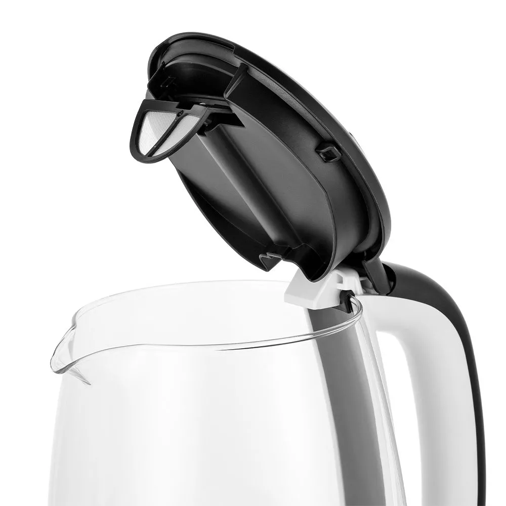 В носике KT-6628 имеется фильтр, который улавливает частицы накипи и предотвращает их попадание в чашку. На крышке установлена кнопка для простого открытия крышки. Большое горлышко чайника облегчает доступ внутрь при мытье и во время добавления воды.