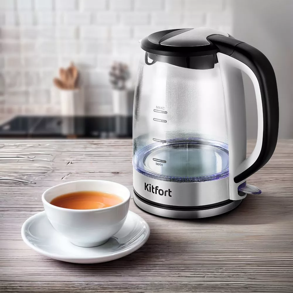 Электрический чайник Kitfort KT-6628 предназначен для быстрого кипячения воды дома, в офисе или на даче. Этот стильный чайник украсит любой интерьер и сочетает в себе пластик, стекло и нержавеющую сталь. Его максимальная мощность 2200 Вт.