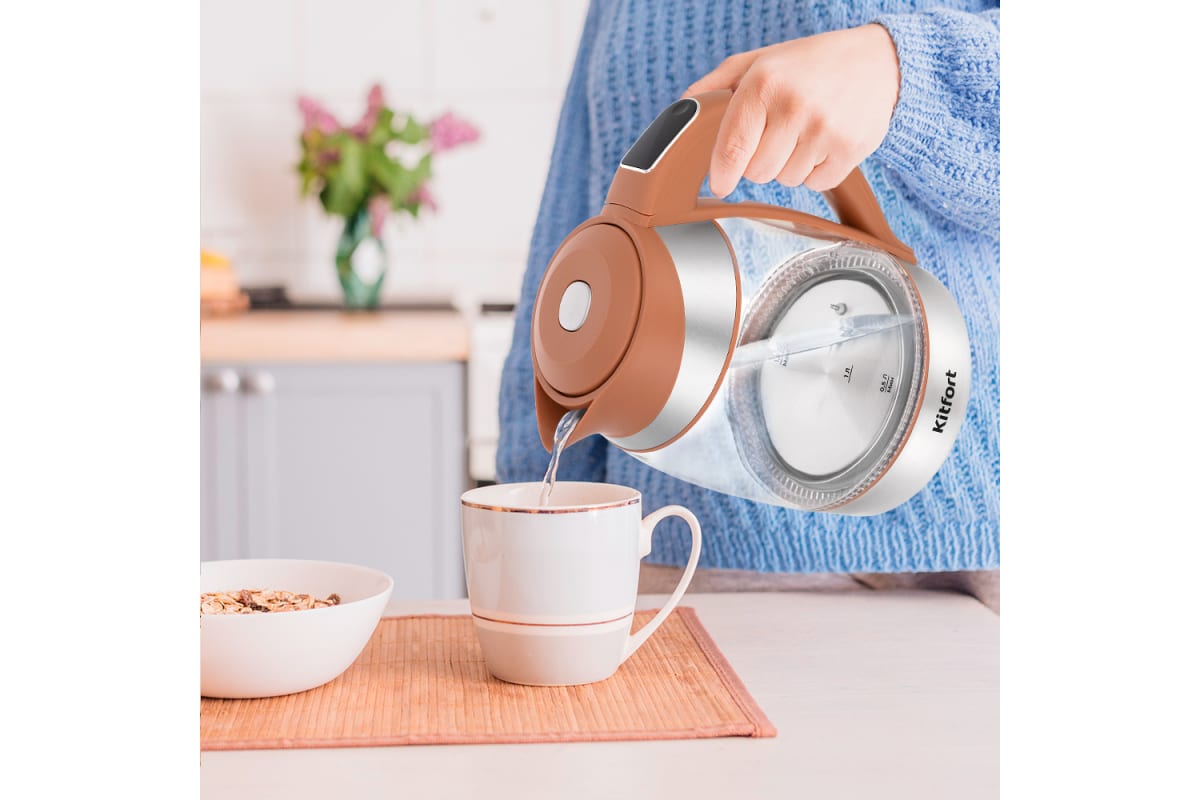 Электрический чайник Kitfort КТ-6661 может не только вскипятить воду, но и нагреть ее от 40 до 100 °С с шагом 10 °С, что очень удобно при заваривании различных сортов чая. Температура 40 оС пригодится для приготовления детского питания. Чайник также оснащен функцией поддержания температуры. Температура воды контролируется встроенным в дно чайника термодатчиком.