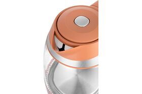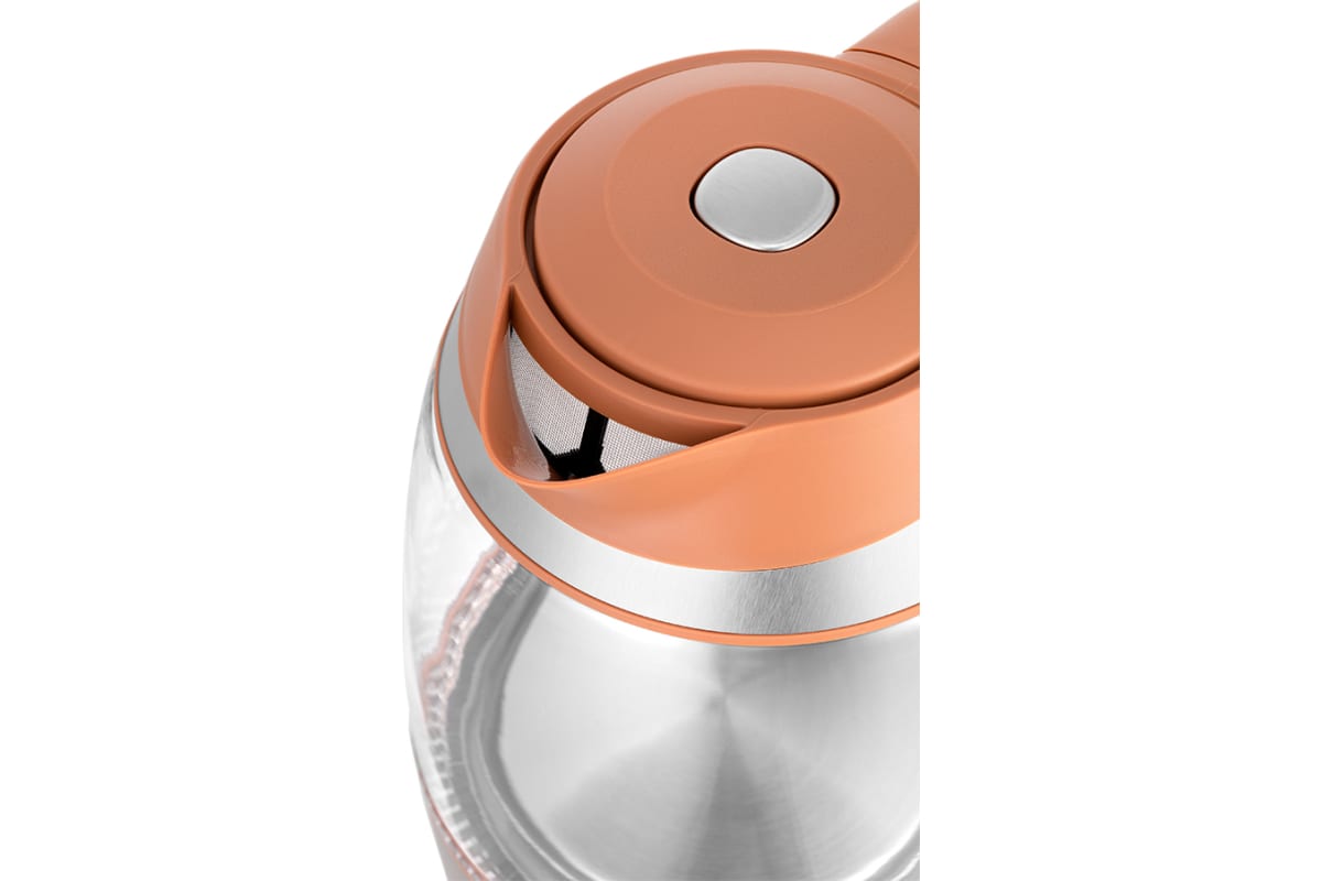 Корпус чайника выполнен из стекла, а крышка и подставка — из пластмассы. Мерная шкала нанесена на прозрачную часть корпуса. Крышка чайника открывается при нажатии на кнопку сверху. Ручка чайника пластиковая, не нагревается и удобно лежит в руке. На ручке расположены дисплей и кнопки выбора температуры и поддержания температуры.