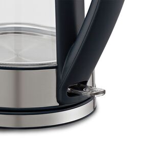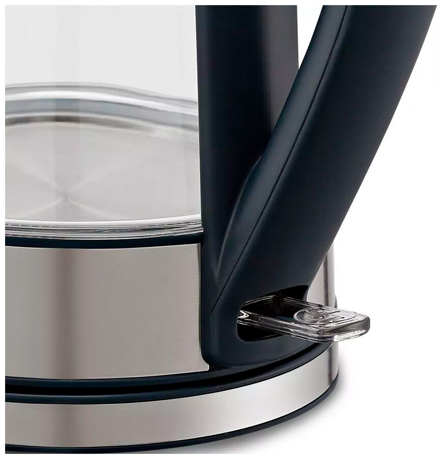 Чайник за раз может вскипятить до 1,7 л воды. Ручка пластиковая, с внутренней стороны имеет приятную шершавую поверхность. Она не нагревается и удобно лежит в руке. Нагревательный элемент закрыт пластиной. Это снижает шум при кипячении и упрощает уход.