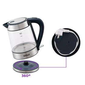 Подставка с центральным контактом даёт возможность располагать на ней чайник в любом положении, обеспечивая вращение на 360°. Снизу имеется отсек для хранения шнура, в который можно смотать излишки шнура электропитания, чтобы он не мешал на столе.