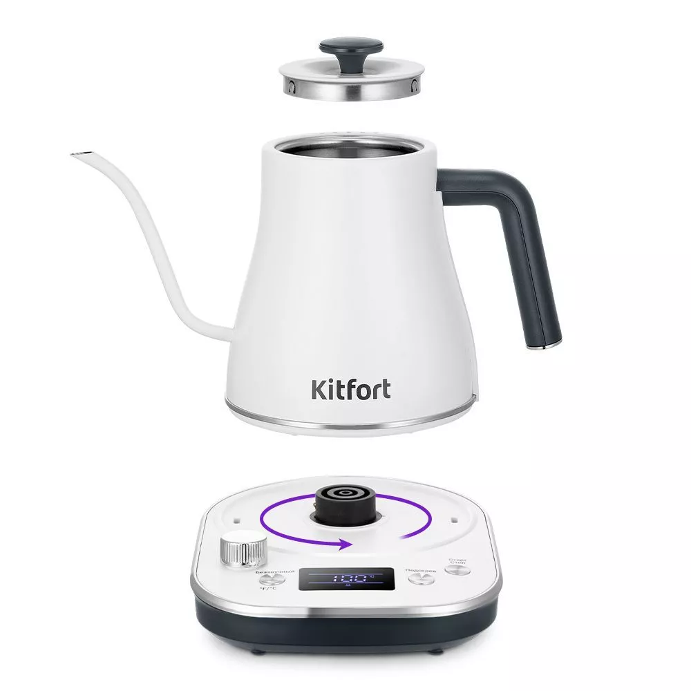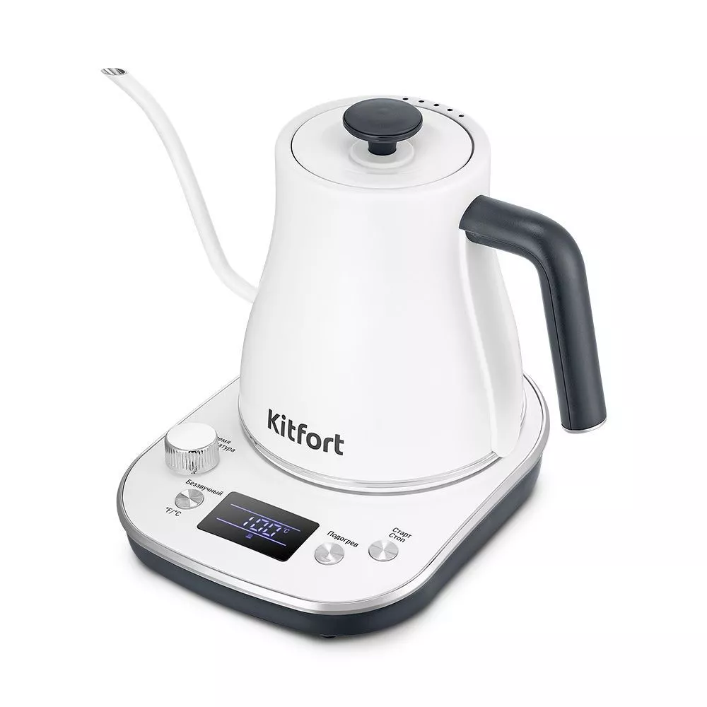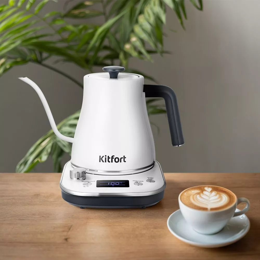 Чайник КТ-6684 предназначен для кипячения и нагрева воды, а также приготовления кофе способами кемекс или пуровер. Контролировать пролив воды с помощью обычного чайника неудобно из-за широкого носика, а длинный носик поможет вам сделать идеальный напиток.