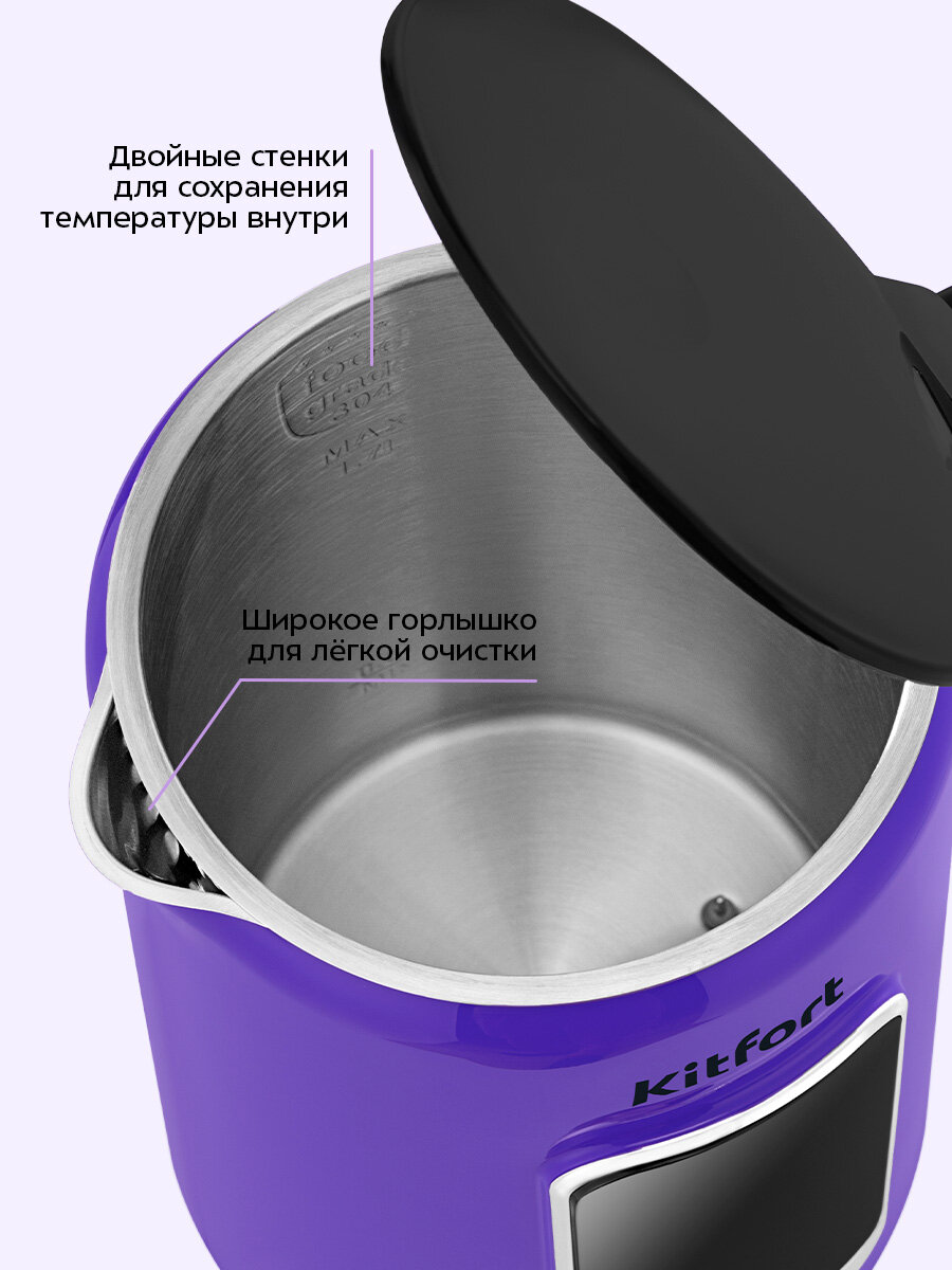 Электрический чайник Kitfort КТ-6704 идеально подойдёт для использования для дома, офиса или дачи. Его объёма в 1,7 литра хватит, чтобы угостить горячим чаем всю семью или дружную компанию.