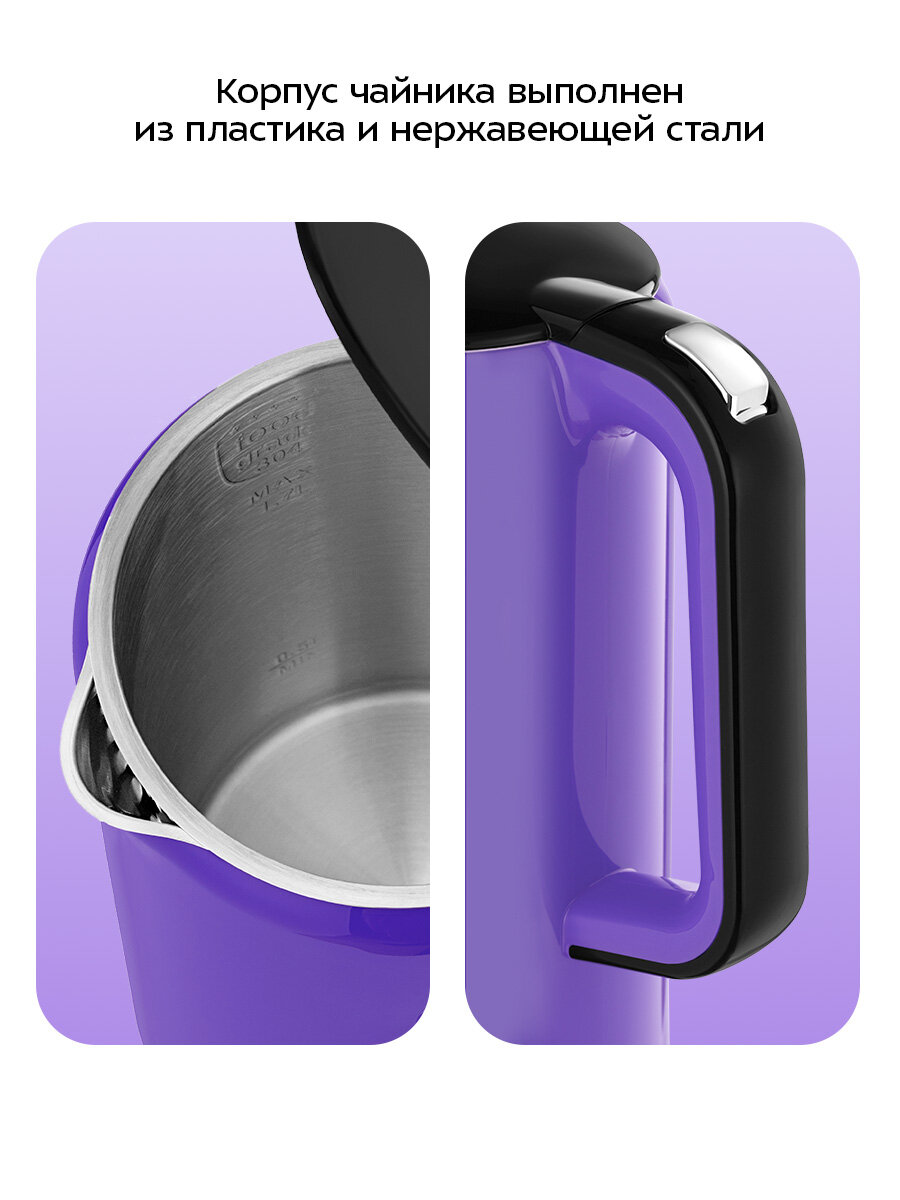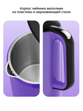 У чайника двойные стенки, благодаря чему вода будет дольше оставаться горячей. Также двойные стенки защищают от ожогов, т.к. почти не нагреваются снаружи. Корпус чайника выполнен из пластика, а внутренняя поверхность из нержавеющей стали.