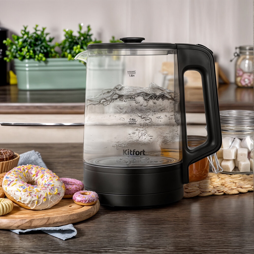 Чайник Kitfort КТ-6708 предназначен для кипячения воды дома, в офисе, на даче. Мерная шкала нанесена на корпус и поможет вам легко залить нужное количество воды в чайник, а благодаря своему лаконичному дизайну идеально впишется в любой интерьер!