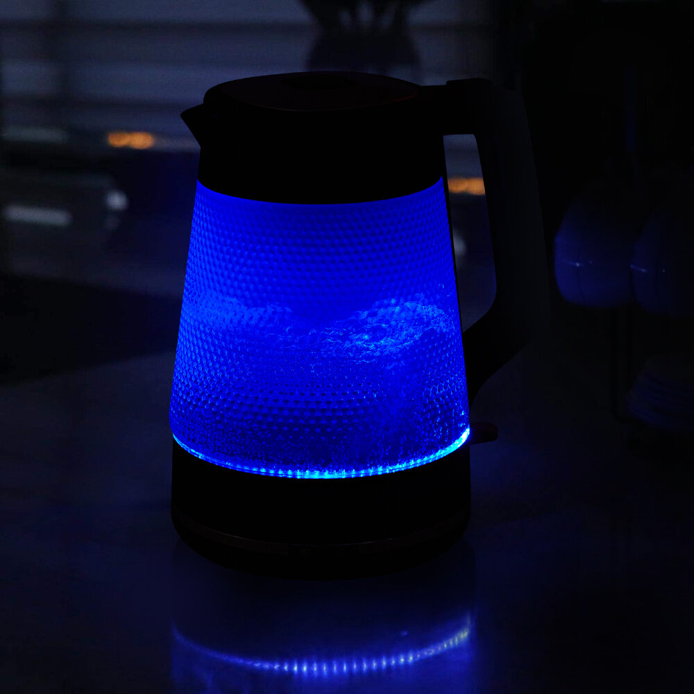 Чайник автоматически отключается при закипании, имеет защиту от перегрева и от включения без воды.