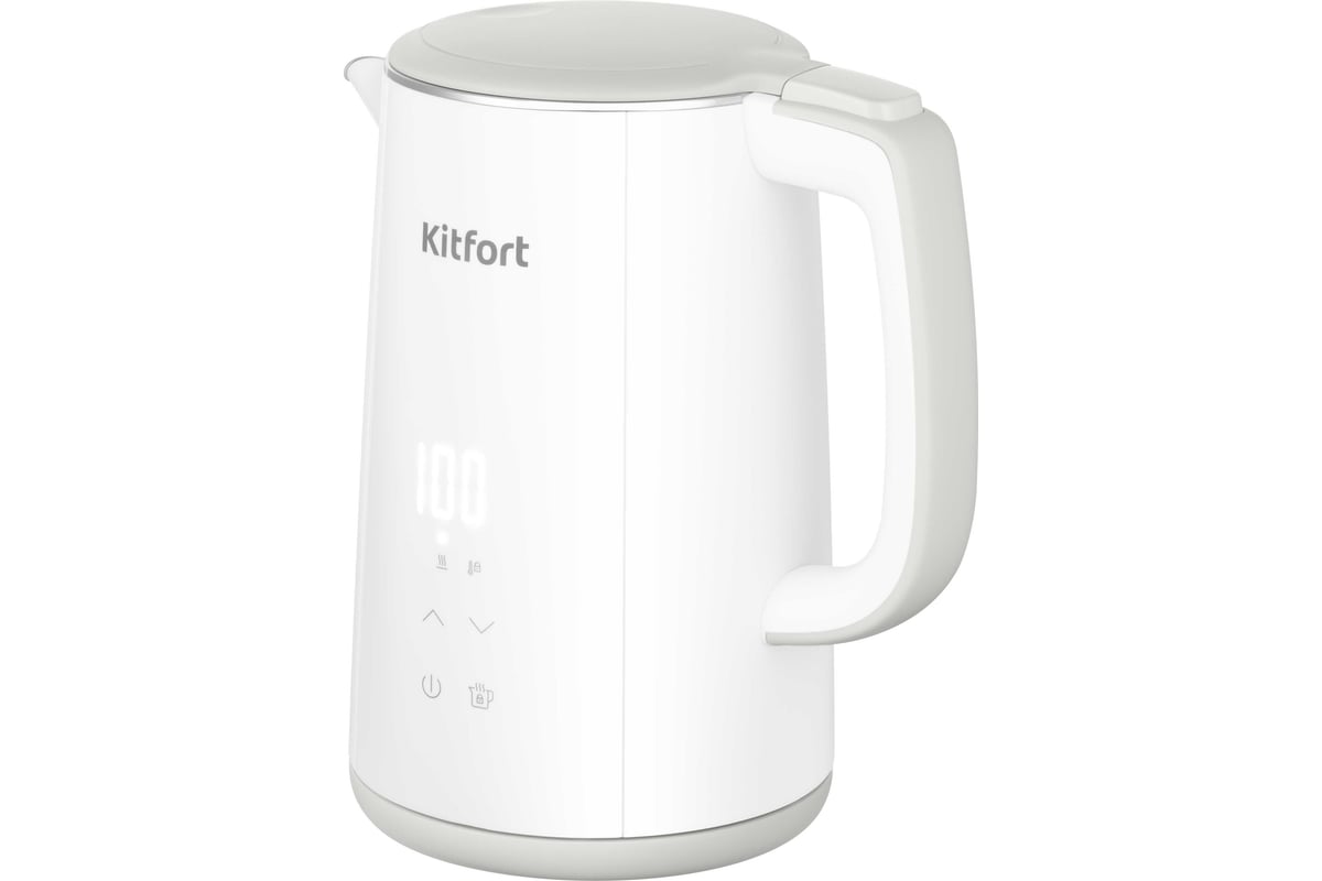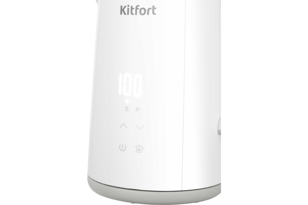 Электрический чайник с электронным терморегулятором Kitfort КТ-6718 может не только вскипятить воду, но и нагреть ее до температуры в диапазоне от 40 до 90 °С с шагом 10 °С, что очень удобно при заваривании различных сортов чая. Чайник также оснащен функцией поддержания температуры в течение 2 часов. Температура воды контролируется встроенным в дно чайника термодатчиком.