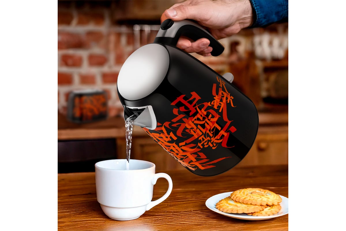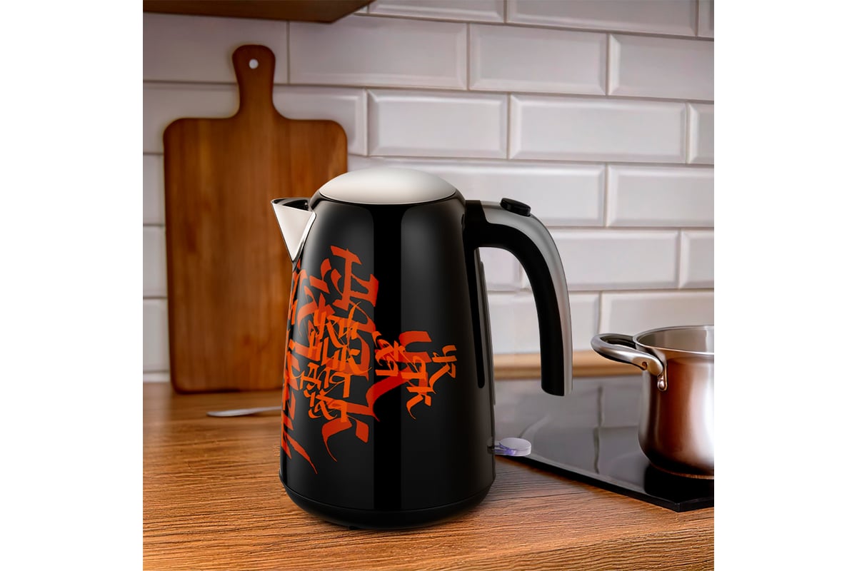 Корпус чайника выполнен из нержавеющей стали, а крышка — из нержавеющей стали и пластика. Мерная шкала находится сбоку под ручкой чайника. Ручка пластиковая, не нагревается и удобно лежит в руке.