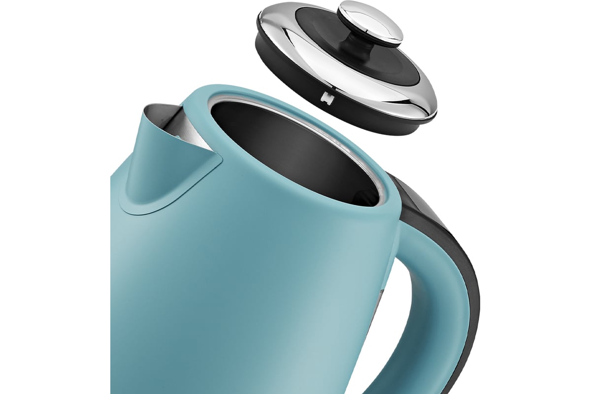 Корпус чайника выполнен из сочетания нержавеющей стали и пластика. Ручка выполнена из пластика.
