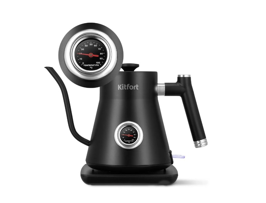 Чайник Kitfort КТ-6760 создан для приготовления кофе в кемексе и пуровере. Изогнутый носик обеспечивает равномерное поступление воды, что важно для идеального напитка. А благодаря мощности в 1200 Вт, он подходит для домов со старой проводкой.