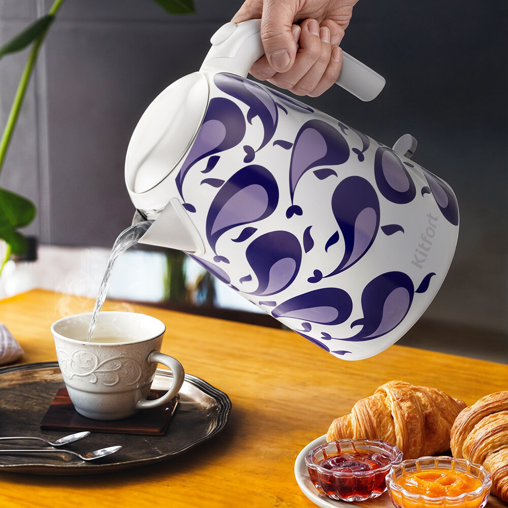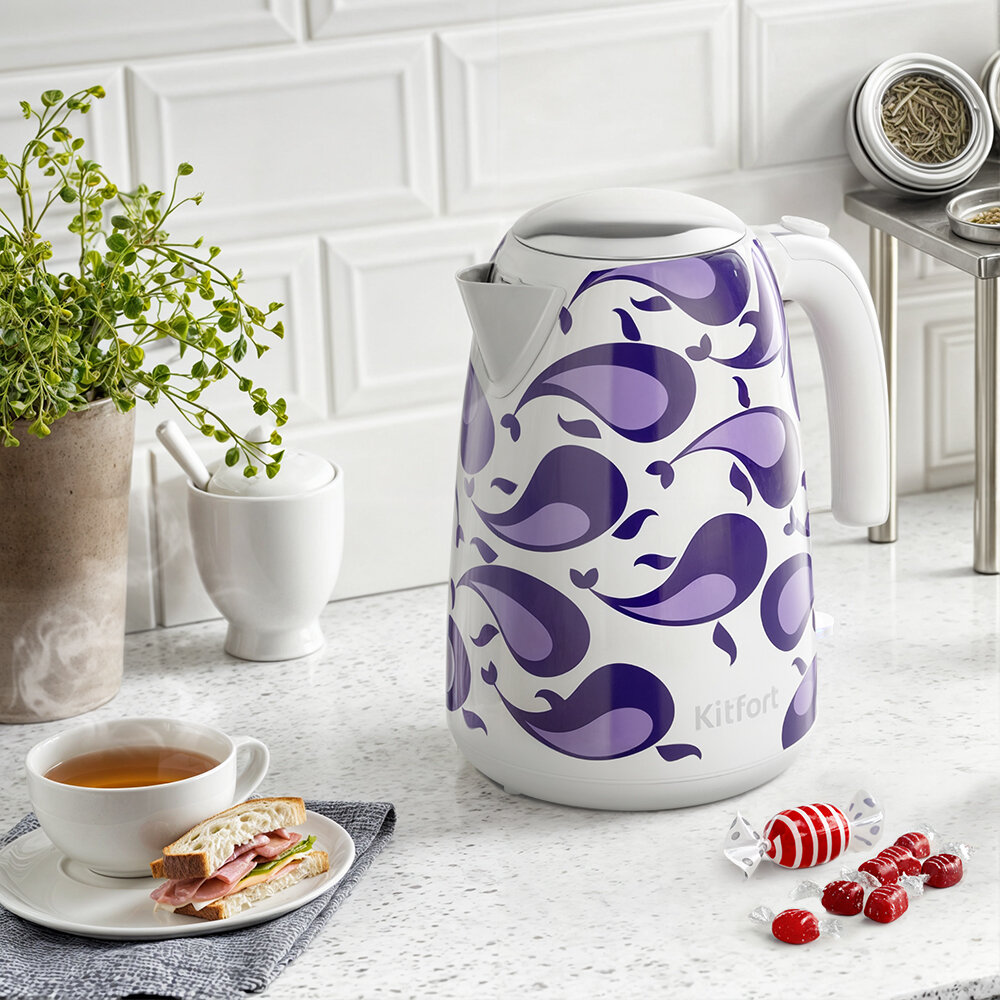Чайник КТ-6768 с оригинальным и стильным дизайном станет настоящим украшением вашей кухни! Закипает он всего за 6 минут, что позволит вам быстро заварить любимый сорт чая или заварить кофе. Чайник оснащён функцией автоматического отключения.