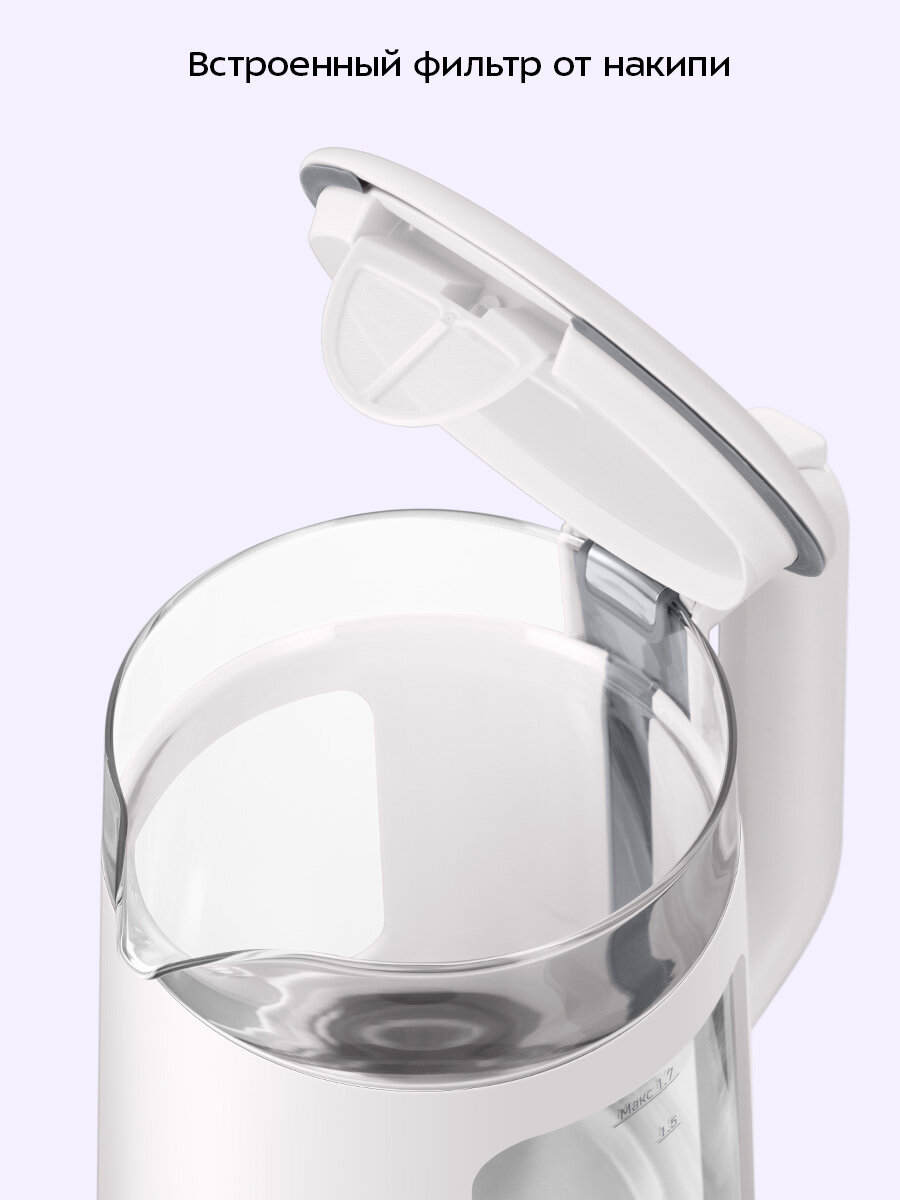 В носике чайника расположен фильтр от накипи, который задерживает частички накипи и предотвращает их попадание в чашку.