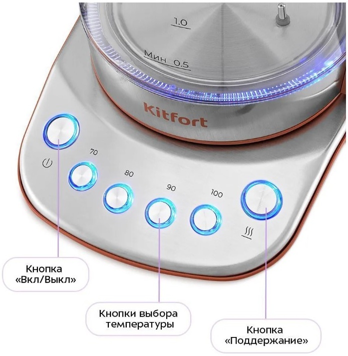 Чайник может не только вскипятить воду, но и нагреть её до температуры от 70 до 90 °C, что очень удобно при заваривании различных сортов чая. Чайник оснащён функцией поддержания температуры.