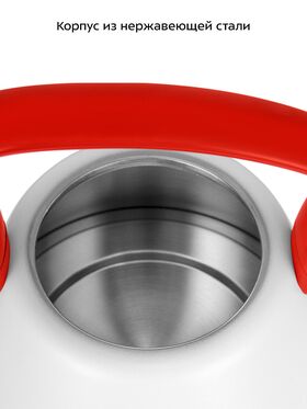 Корпус чайника выполнен из нержавеющей стали. Крышка чайника съёмная, сделана из нержавеющей стали. На внутреннюю поверхность чайника нанесена отметка «MAX».