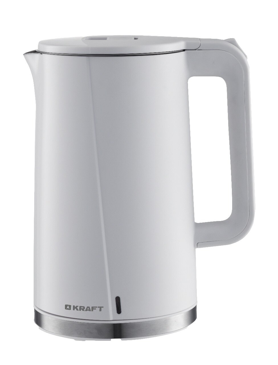 Электрический чайник KRAFT KF-KPS1765W в белом цвете имеет мощность 2200 Вт и способен за несколько минут довести до кипения 1,7 л воды.