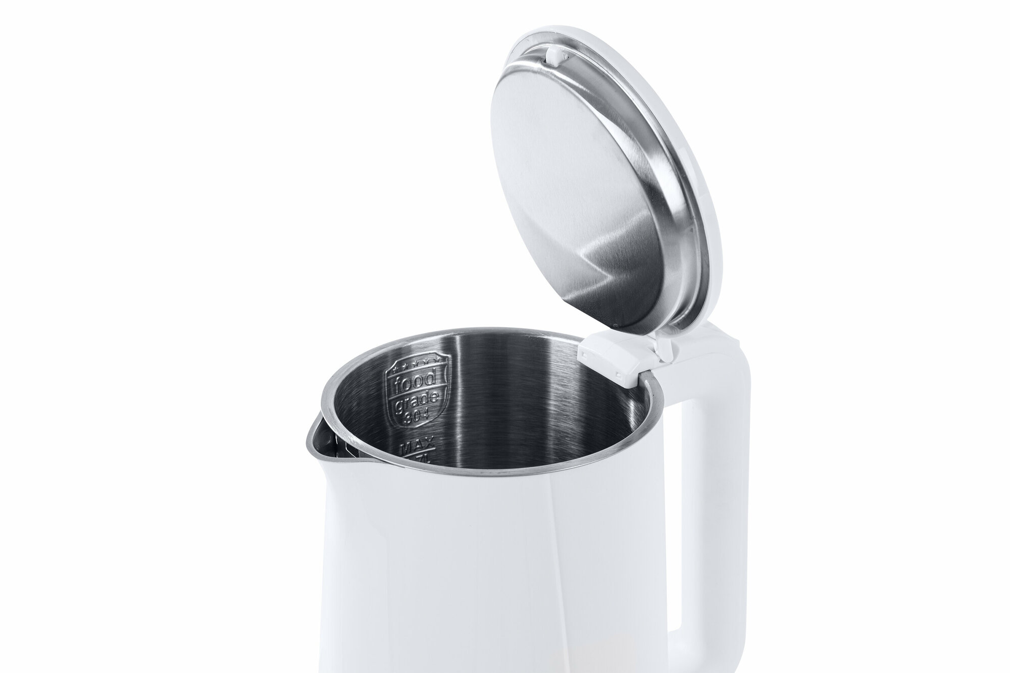 Все пластиковые элементы в электрическом чайнике выполнены из пищевого пластика первичной обработки. Это значит, что в пластике нет вредных примесей, он может безопасно контактировать с водой и продуктами.