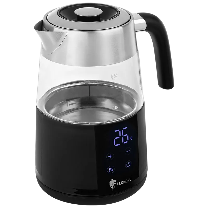 Электрический чайник с двойными стенками(закаленное стекло внутри, матовый пластик снаружи) и LED дисплеем превращает кипячение воды в эстетическое удовольствие. Легким прикосновением к сенсорной панели вы задаете идеальную температуру от 40℃ до 100℃ с шагом 5℃ - будь то нежный чай или крепкий кофе, а функция поддержания тепла до 2 часов избавит от разочарования в остывшем напитке. Его память запоминает любимые настройки, а вращение на 360° и защита от включения без воды делают использование простым и безопасным. Мощный , но элегантный помощник объемом 1,7 л, готовый служить вам годами