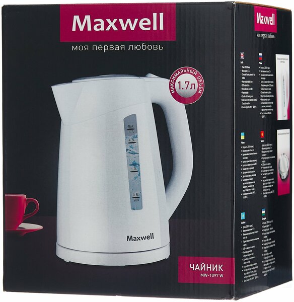 Пластиковый чайник MAXWELL MW-1097 отлично впишется в интерьер современной кухни, благодаря своему универсальному дизайну и белому цвету. Чтобы контролировать уровень воды, не нужно постоянно заглядывать внутрь. Изделие имеет специальную шкалу, которая позволяет оценить количество залитой жидкости. Чайник имеет скрытый нагревательный элемент, который легко очистить от накипи. Максимальный объём – 1,7 литра. В базе чайника также имеется специальное отделение для хранения шнура. Стильная и простая модель для офиса или дома! Встроенный фильтр гарантированно защитит вас от образовавшейся накипи.
