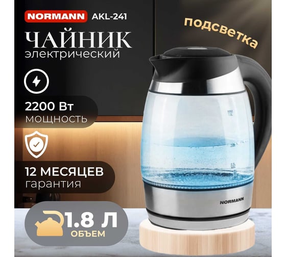 Электрический чайник NORMANN AKL-241 предназначен для бытового использования.