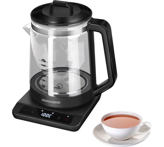 REDMOND RK-G1310D — стильный электрический чайник с сенсорной панелью управления. Он поможет вам не только быстро вскипятить воду, но нагреть ее до определенной температуры, чтобы правильно заваривать разные сорта чая, готовить детское и спортивное питание.
