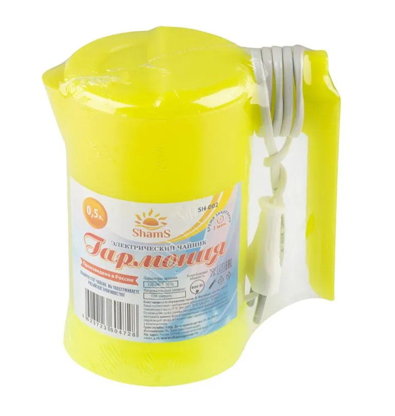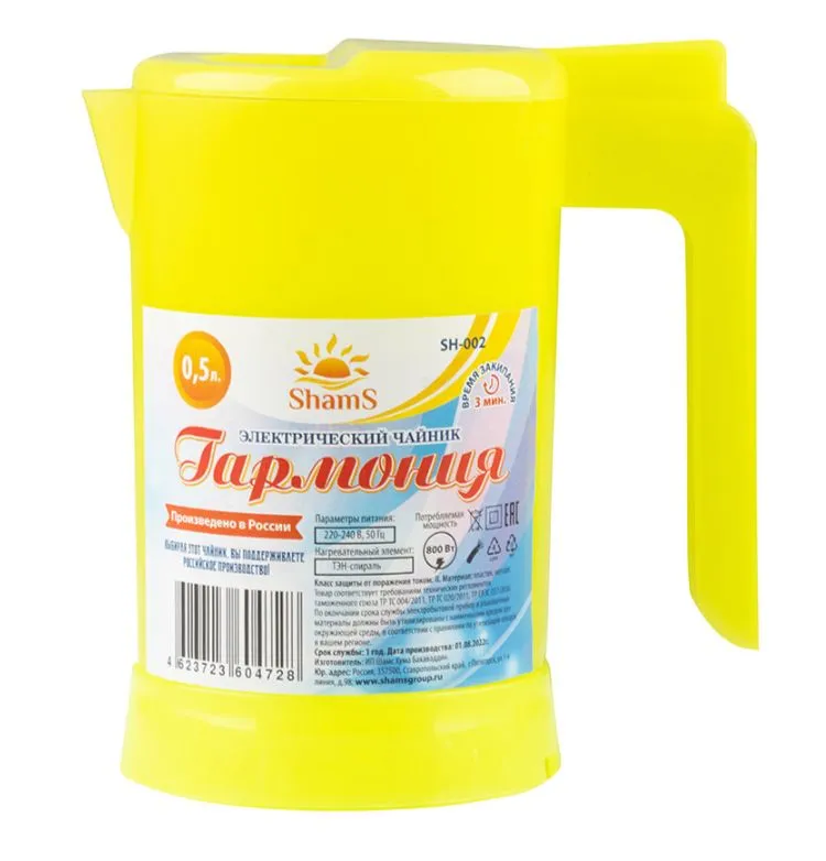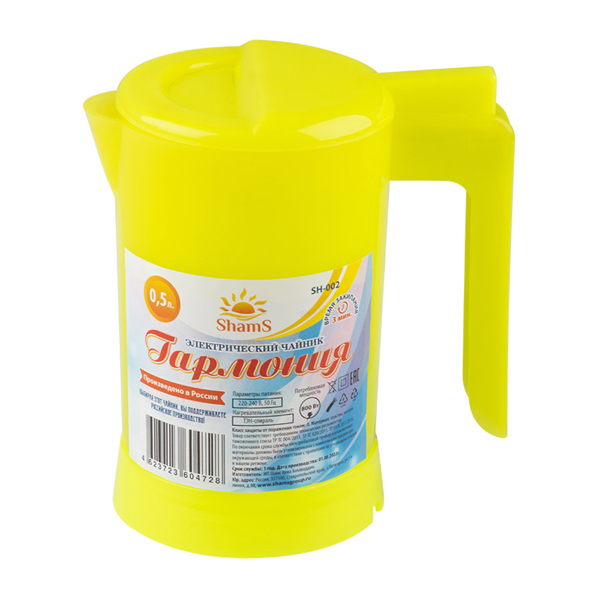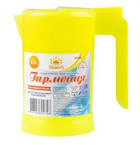 Пластиковый легкий электрический чайник с открытым нагревательным элементом быстро вскипятит воду для нескольких человек.