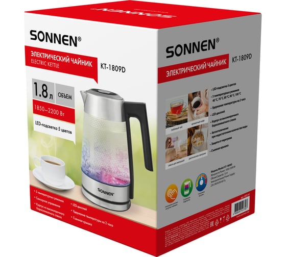 Сочетание надежности, стиля и функциональности – это новый чайник SONNEN! 5 температур и 5 цветов подсветки, оригинальный текстурный корпус – это идеальное дополнение к любой кухне!