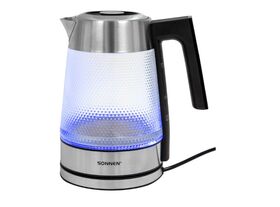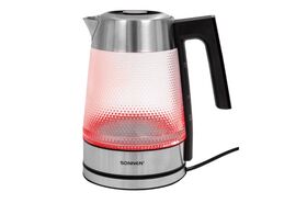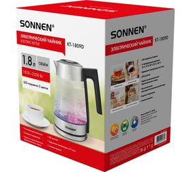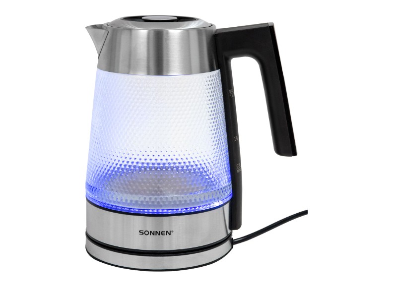 Электрический чайник SONNEN KT-1809D имеет надежный корпус из термостойкого стекла с оригинальной текстурой и прочное основание из нержавеющей стали.