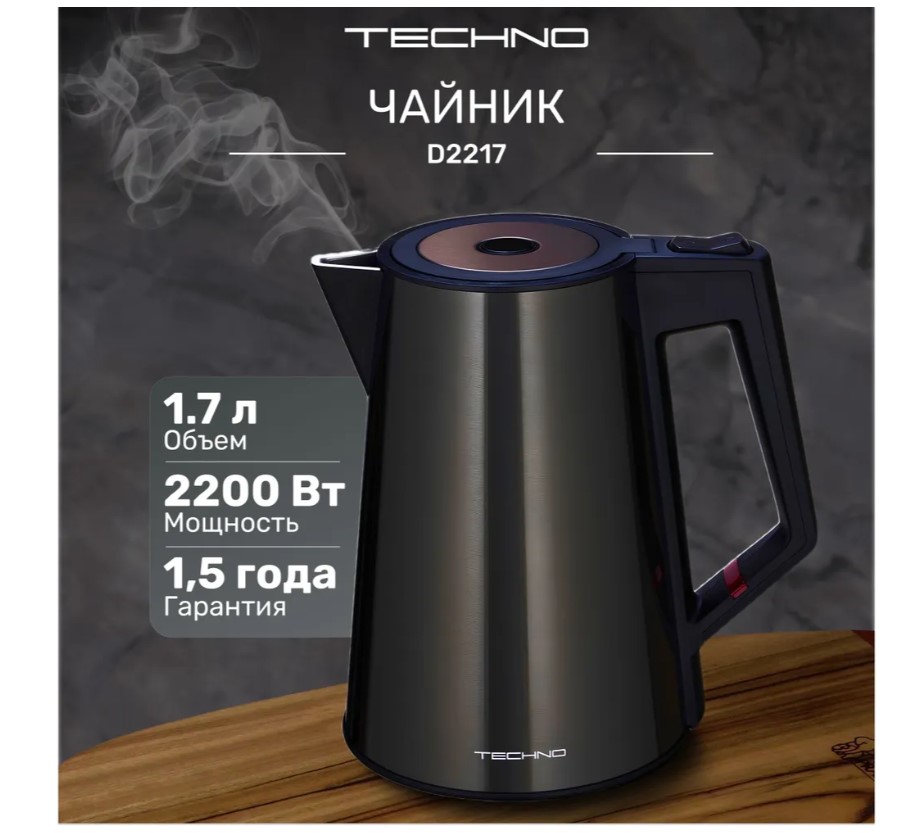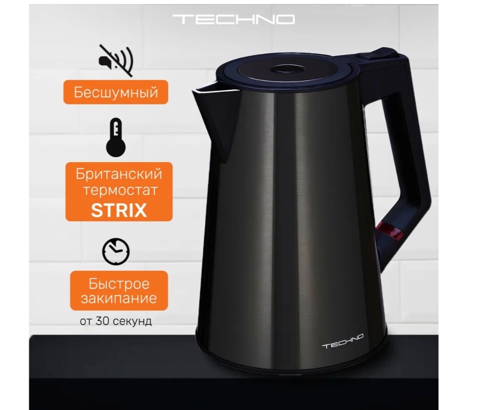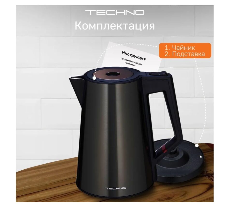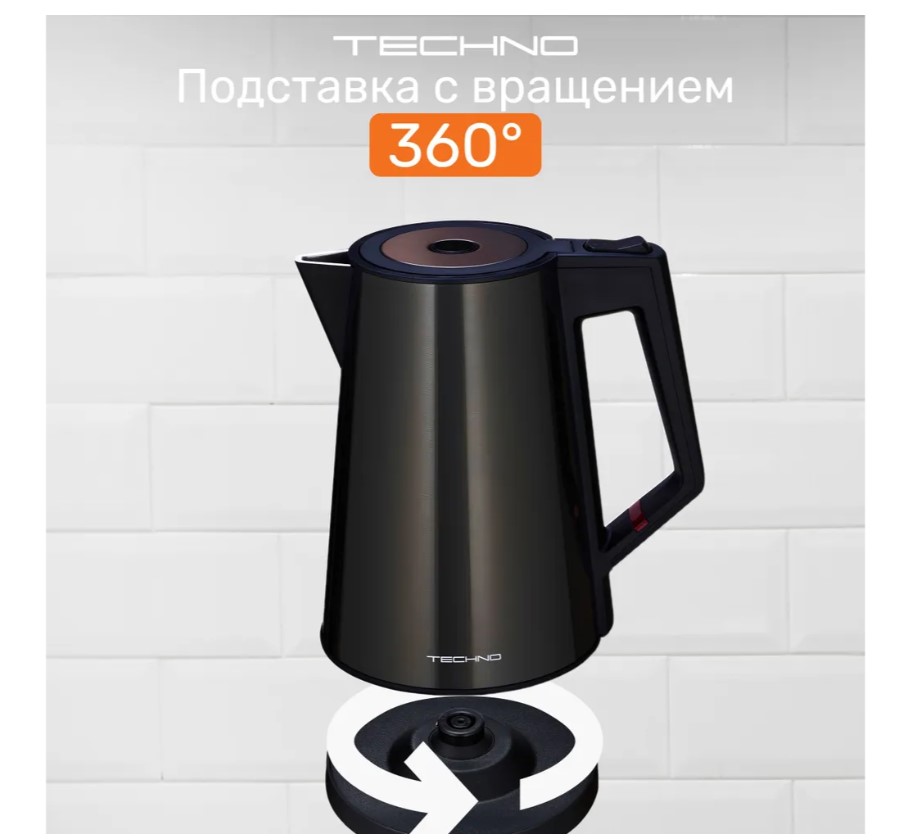 Конструкция чайника: Вращение подставки на 360°, Бесшумный, Двухслойный корпус, Индикатор уровня воды, Отсек для шнура, Противокапельная система, Фильтр от накипи