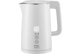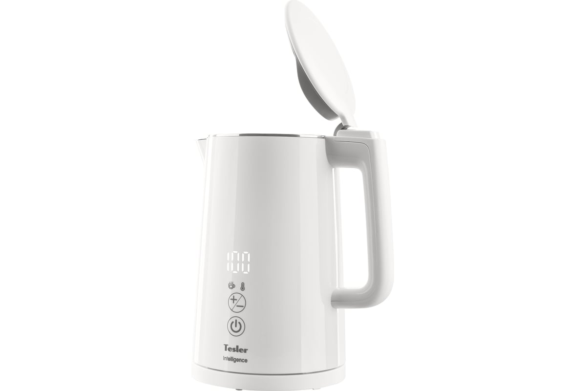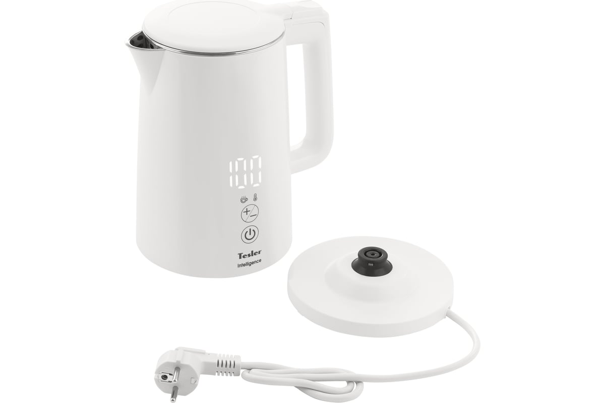Электрический чайник Tesler KT-1520 не только кипятит воду, но и нагревает её до одного из шести предустановленных значений (40, 50, 60, 70, 80, 90 градусов). Выбранная температура поддерживается в течение 2 часов.