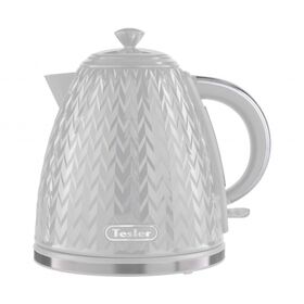 Tesler KT-1704 — стильный электрический чайник с текстурированной поверхностью, дополненной хромированными акцентами.