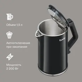 Конструкция чайника: Вращение подставки на 360°, Двухслойный корпус, Отсек для шнура