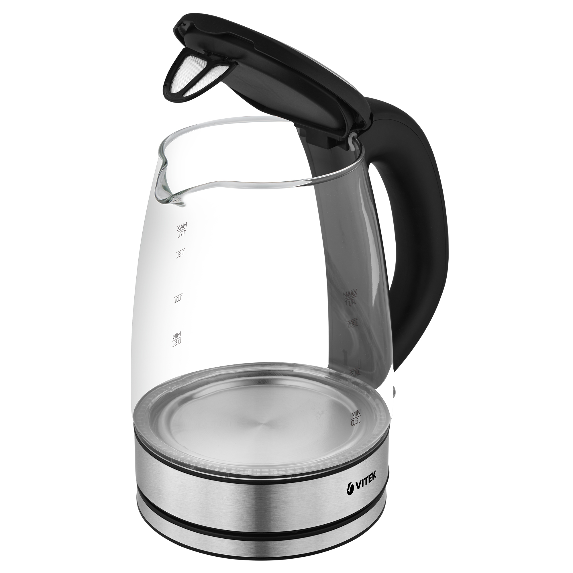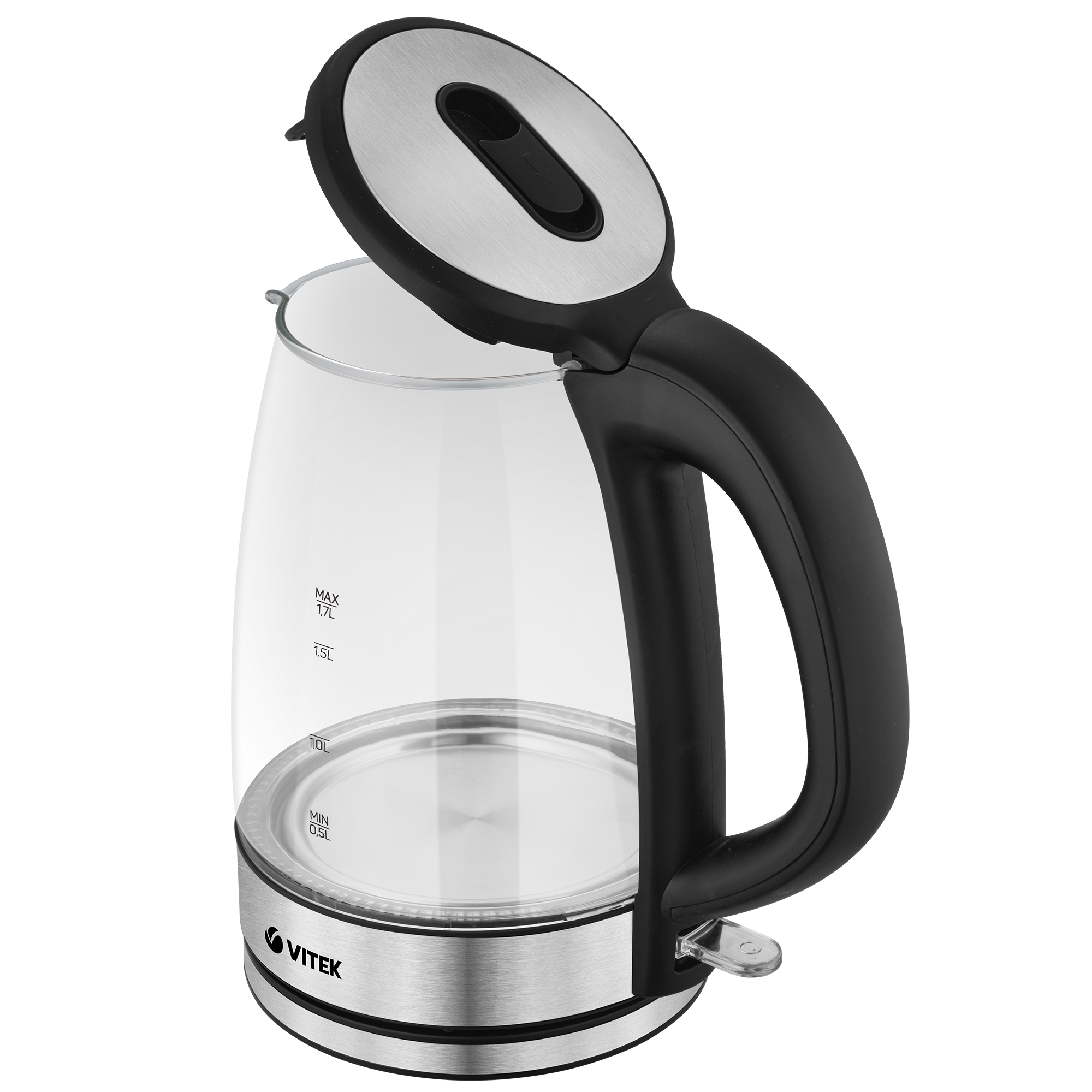 Чайник VITEK VT-1180 с внутренней подсветкой станет настоящим сокровищем для вашего дома. Объема в 1,7 л хватит на несколько порций бодрящего утреннего кофе или вечернего чая. Корпус из экологического термостойкого стекла, декорированный стальными элементами, идеально впишется в интерьер любой современной квартиры.