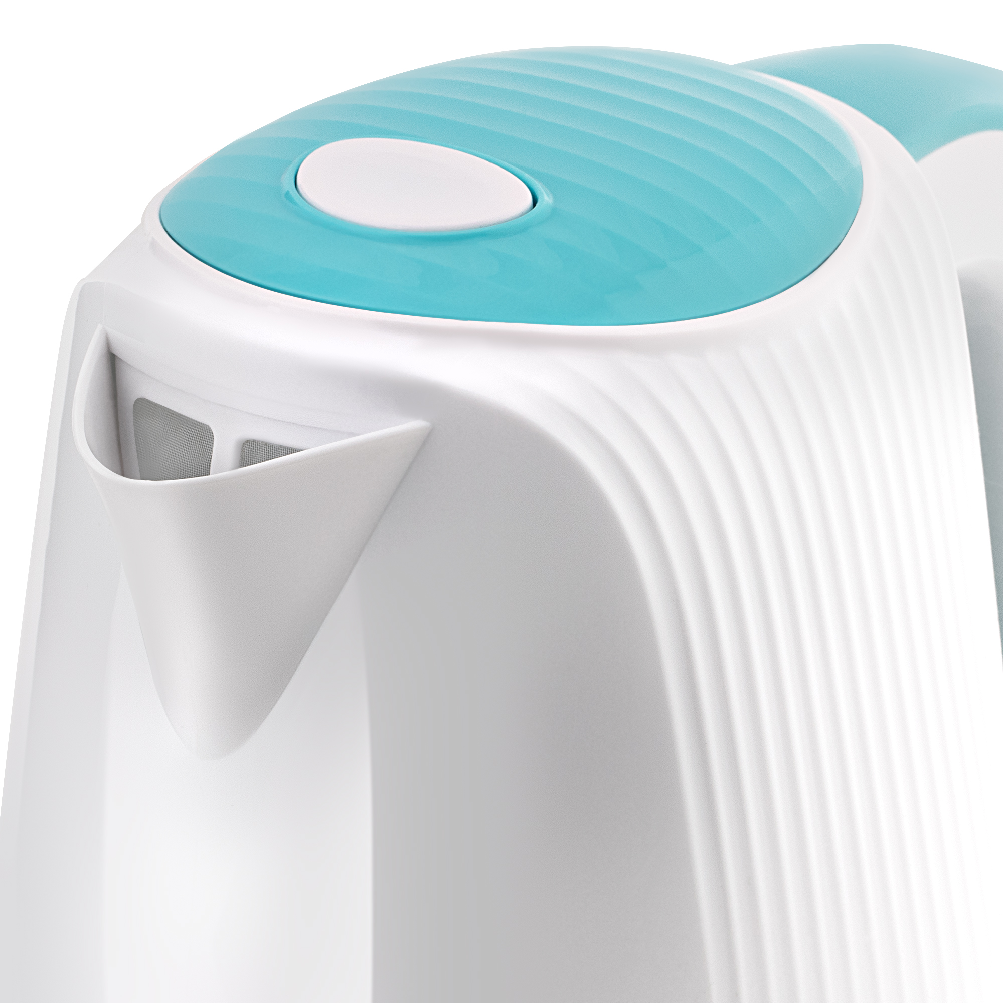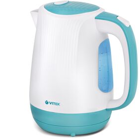 Термостойкий пластиковый чайник VITEK VT-7059 W вмещает 1,7 л воды и имеет мощность 2200 Вт. Насладитесь чашечкой любимого напитка с друзьями — воды хватит на всех!